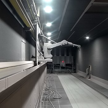 Aufgrund der enormen Größe der Werkstücke sind hier flexible Lösungen besonders wichtig. So haben wir unter anderem eine verfahrbare kombinierte Spritz- und Trockenkabine für die Beschichtung von Statoren konzipiert, die an drei Bearbeitungsstationen andocken kann oder auch eine teleskopierbare kombinierte Spritz- und Trockenkabine, die sich bis auf wenige Meter zusammenfahren lässt.