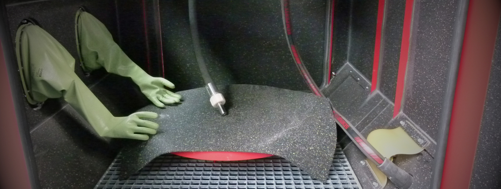 Kleine Werkstücke lassen sich nicht wirtschaftlich in großen Strahlräumen strahlen. Daher konzipieren, konstruieren und fertigen wir auch Handstrahlkabinen in unterschiedlichen Größen im Injektor- oder Druckstrahlverfahren.